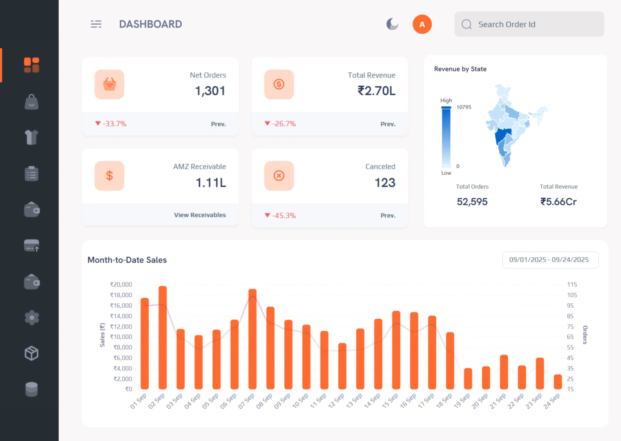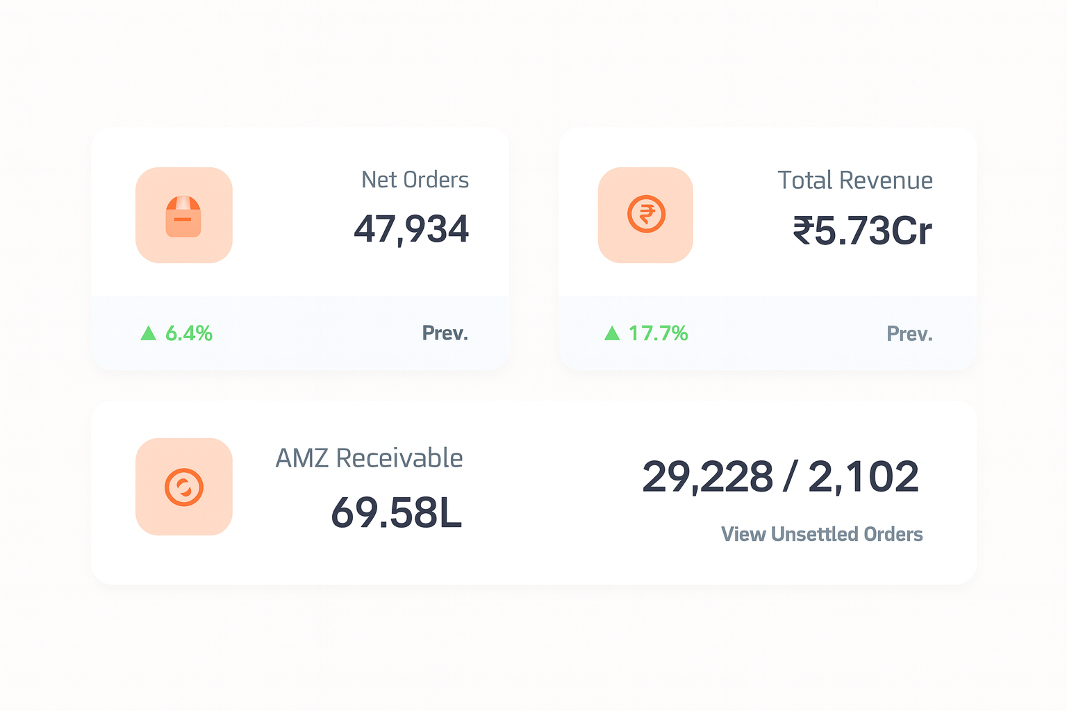 Never lose track of your Amazon payouts again. Our smart reconciliation system matches your orders, refunds, fees, and settled & unsettled payments to ensure every rupee is accounted for.