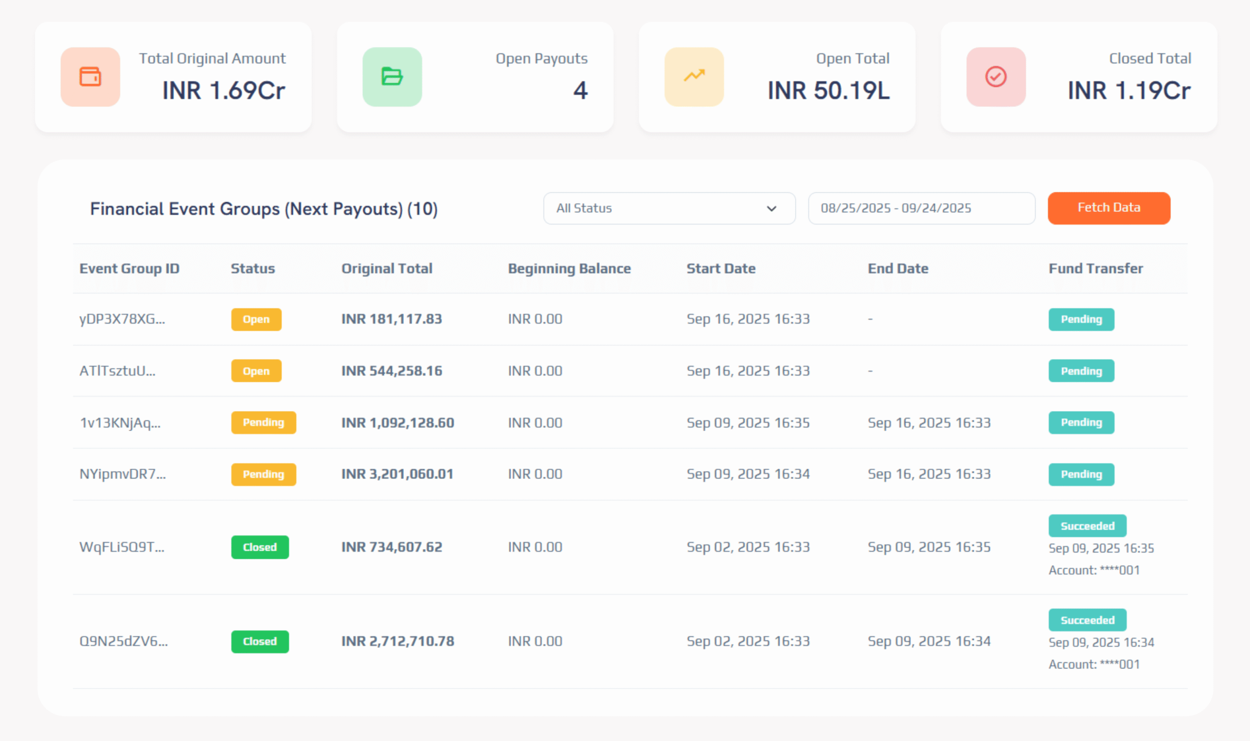Take charge of your business finances with real-time cash flow insights. Track settlements, refunds, fees, and upcoming payouts all in one place, so you can make smarter financial decisions.
